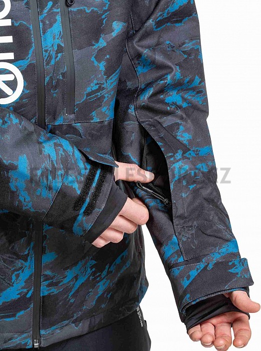 Co se týče kapes, bunda Manifold je také velmi praktická. Má vnější zipové kapsy, náprsní zipovou kapsu a vnitřní zipové kapsy, takže ať už potřebuješ uložit telefon, peněženku nebo klíče, máš kam. Větrání v podpaží je zase tu od toho, když potřebuješ trochu "vyvětrat" po náročným sjezdu. Kapuci i spodní část bundy si můžeš stáhnout, což je skvělé, když se počasí zhorší. A co je super, je snow catcher. To je ten sněhový elastický pás se zapínáním na druky a poutky pro uchycení ke kalhotám. Přijde vhod, když se zrovna vysekáš, tak ti sníh neproleze pod bundu. Dalším nezbytnou vychytávkou jsou například vnitřní elastické návleky s otvorem pro palec a stahování rukávů pomocí suchého zipu. Tak co, jdeš do toho?