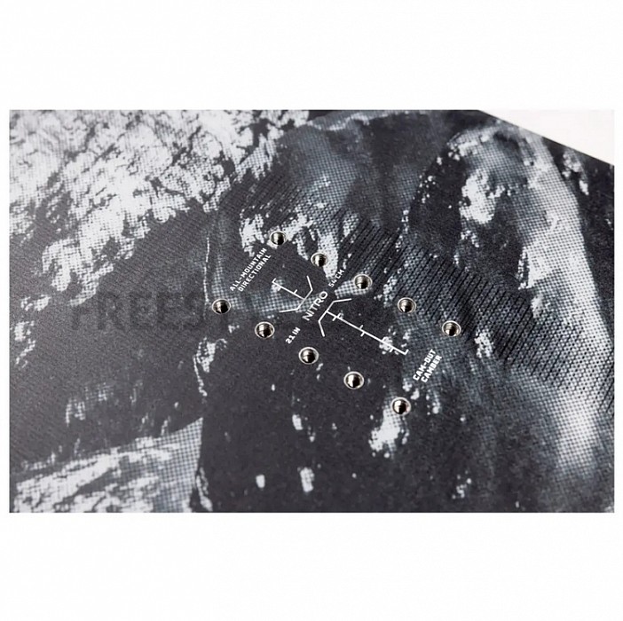 Sidecut: Dual Degressive - tento sidecut kombinuje menší rádius vykrojení uprostřed se dvěma většími na špičce a patě, díky čemuž je deska klidná a přitom hravá. Nejvíce odpouštějící sidecut v řadě Nitro desek.